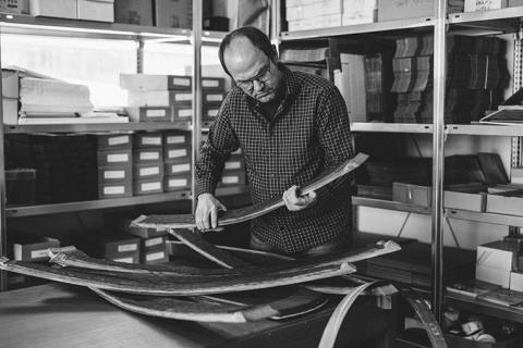 Nachdem das Barriquefass aus dem Cave du Rhodan für die Weinbereitung seinen Zweck erfüllt hat, wird es in seine Einzelteile zerlegt, und die Fasstauben werden zur Weiterverarbeitung der Brillenmanufaktur Marcus Marienfeld übergeben. Marcus Marienfeld fräst, ja modelliert 5-achsig wie von Geisterhand im freien dreidimensionalen Raum und fertigt aus den Fasstauben klassische Kunstwerke, wie wir es von seinen weiteren Kollektionen aus Titan, Gold, Platin, Vollcarbon und Horn kennen.